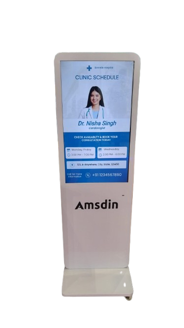 Boost your brand visibility with the 32 Inch Interactive White Indoor Digital Display Standee Screen. Featuring a sleek black design, this display is perfect for retail stores, malls, hotels, and exhibitions. With its full HD resolution, sturdy floor stand, and plug-and-play media support, it ensures effortless content delivery and maximum visual impact—ideal for promotions, digital menus, and informational displays.