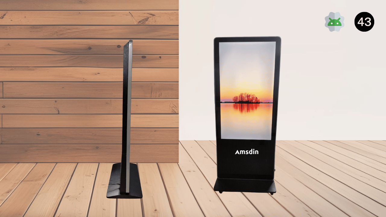 Enhance your brand visibility with our 43 Inch Floor Standing Digital Display Signage Screen. This sleek black unit is perfect for retail stores, malls, hotels, and exhibitions. Featuring full HD resolution, a sturdy floor stand, and plug-and-play media support, it’s designed to attract attention and deliver impactful content effortlessly. Ideal for promotions, menus, and information display.