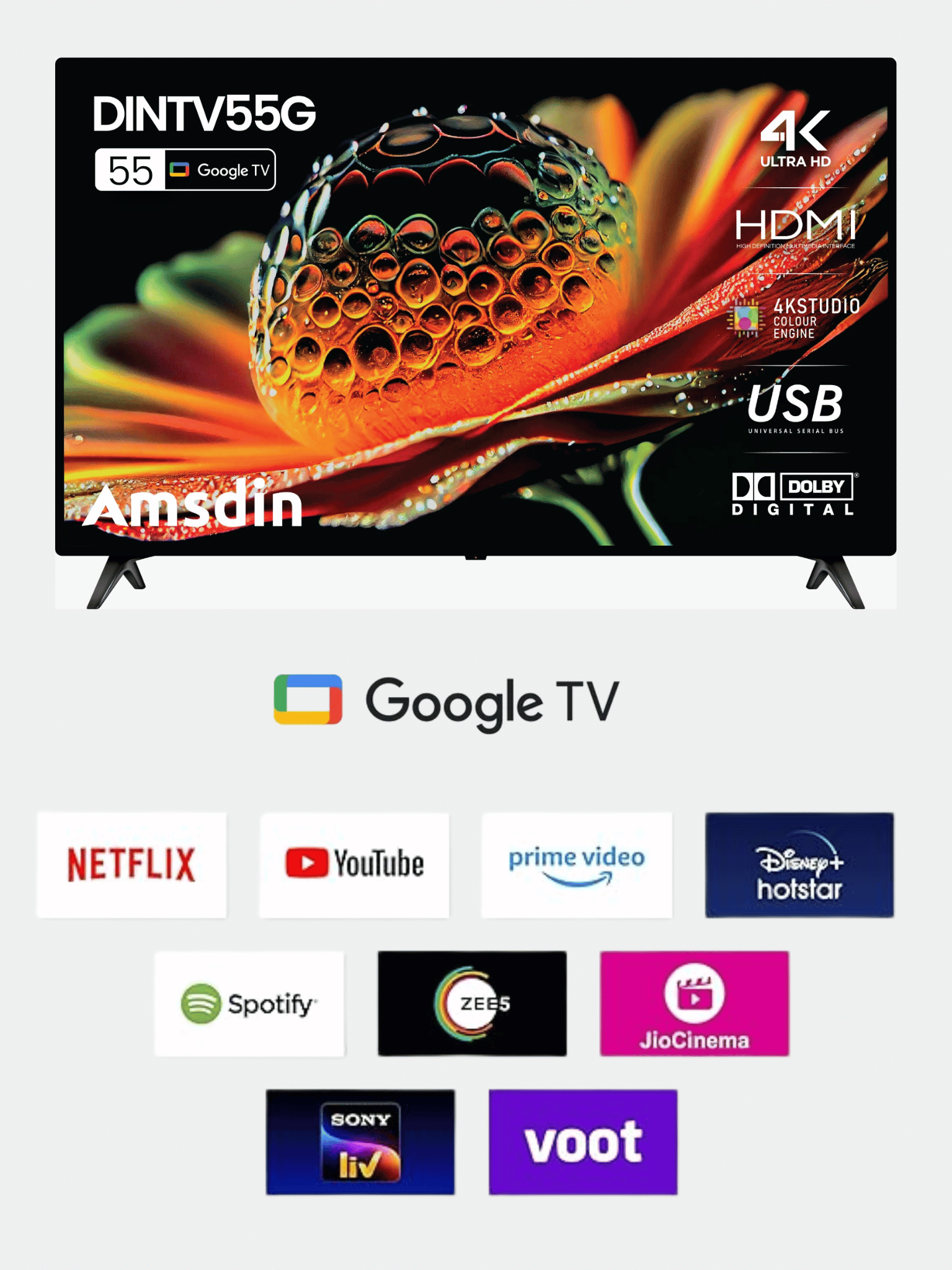 | Smart Features | Netflix, YouTube, Prime Video, Google Play Store |